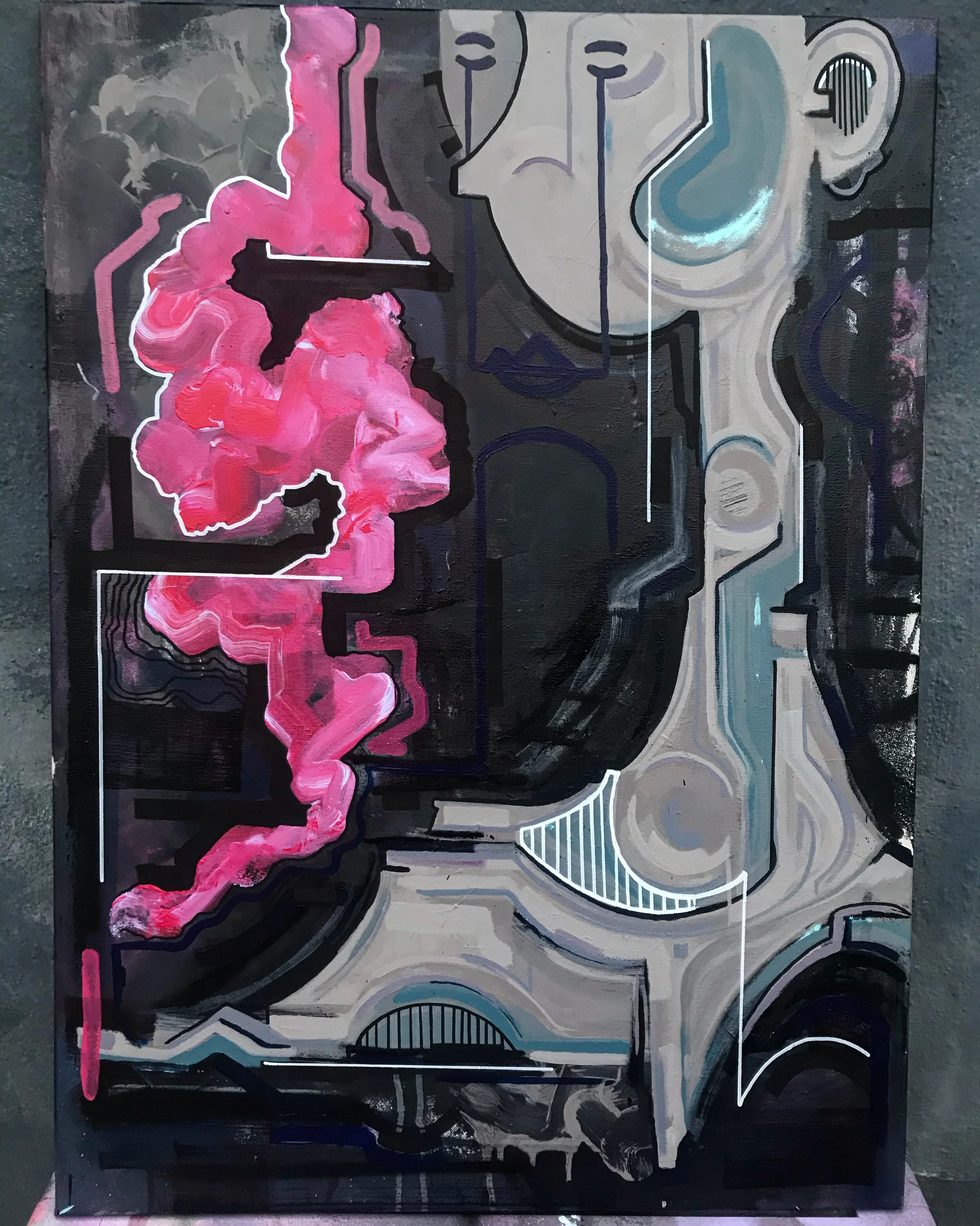 The structure of cities and the paint that covers them has clearly captured since he first began to appreciate graffiti. This appreciation and interest of his continues spread to other mediums, into digital illustration and now different forms of painting.