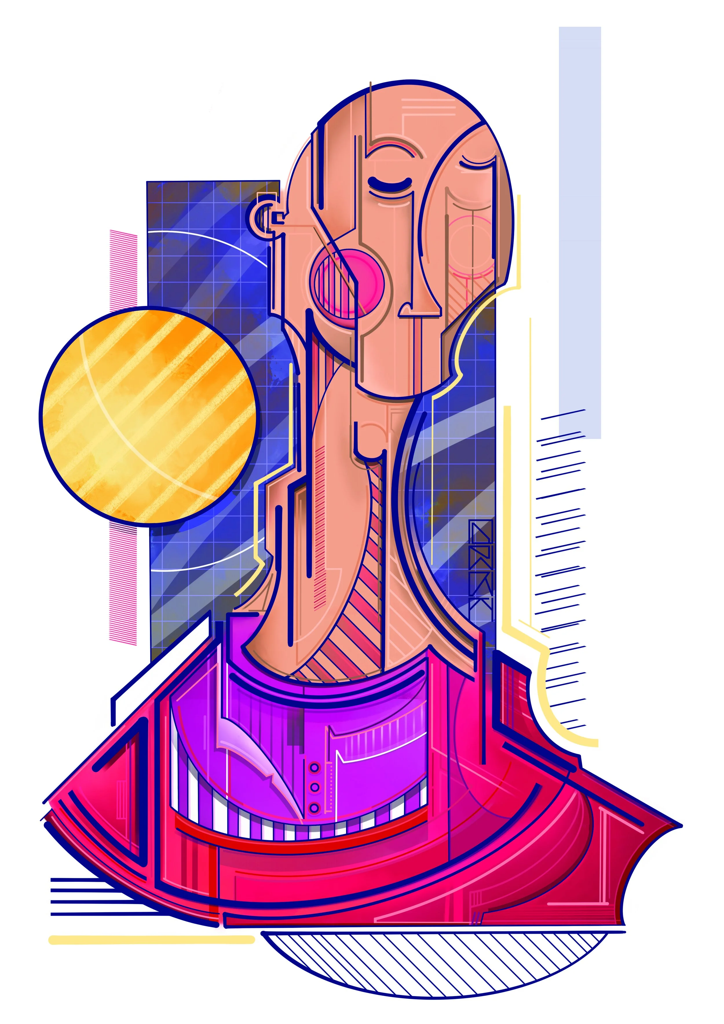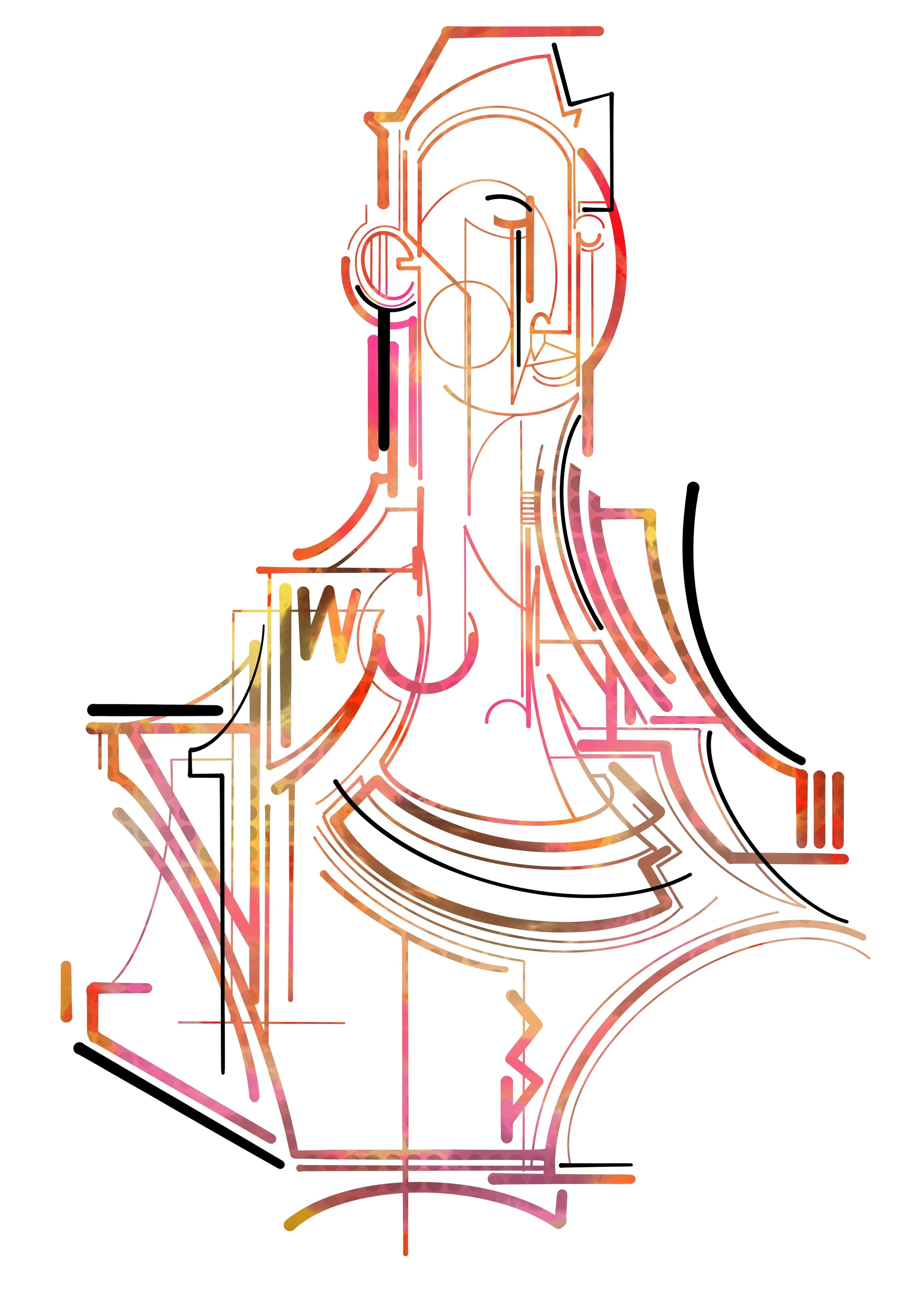 “At the moment, I’m getting a lot of inspiration from old portraits and architecture. Trying to blend the two together in a way that is a nod to both. The delicate and personal feelings that come from a portrait mixed with the complex nature of architecture. I see a building that has a strange roof and Issa like oh that would make a sick eyebrow. I find going to a gallery is like putting yourself on charge for a few hours.”